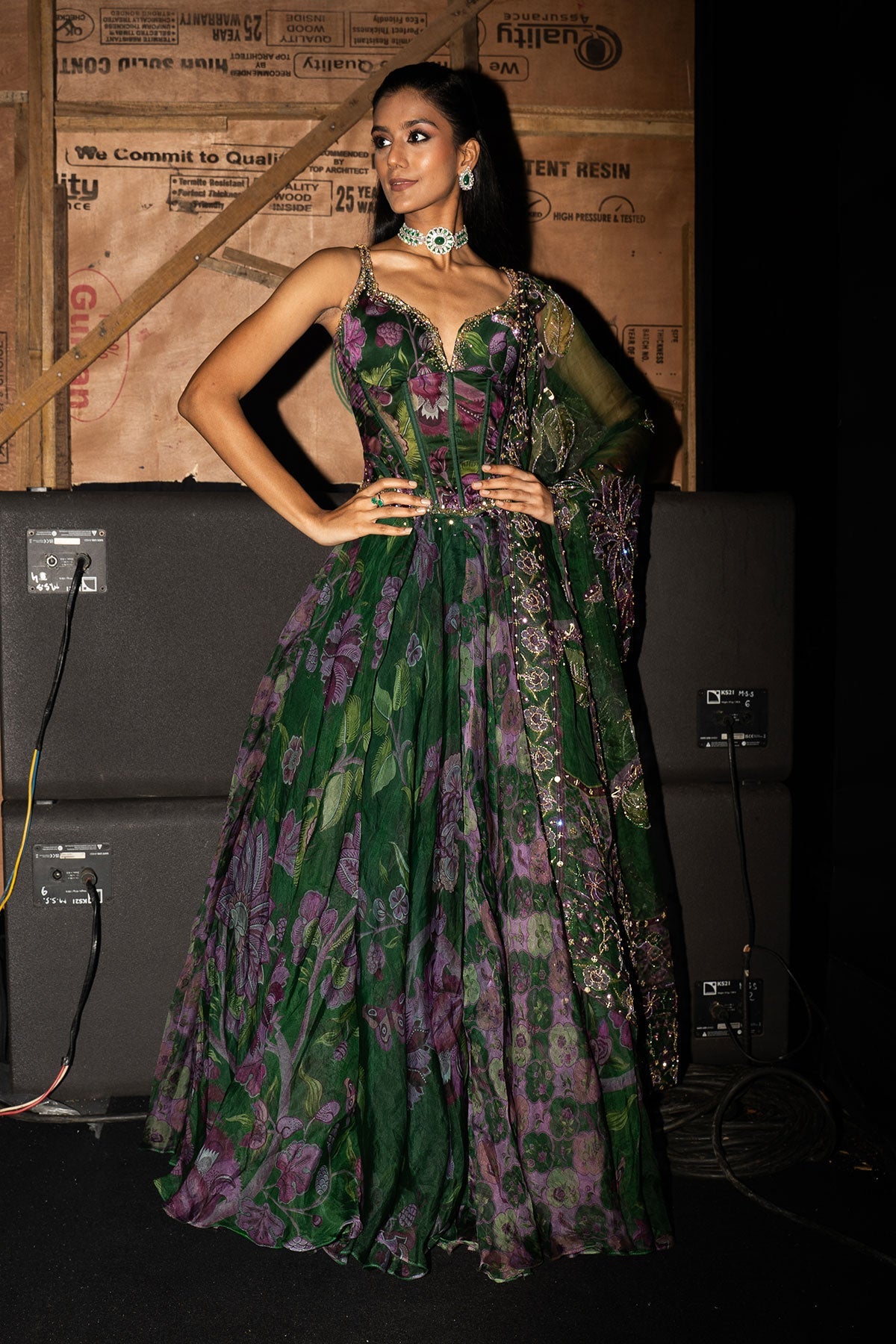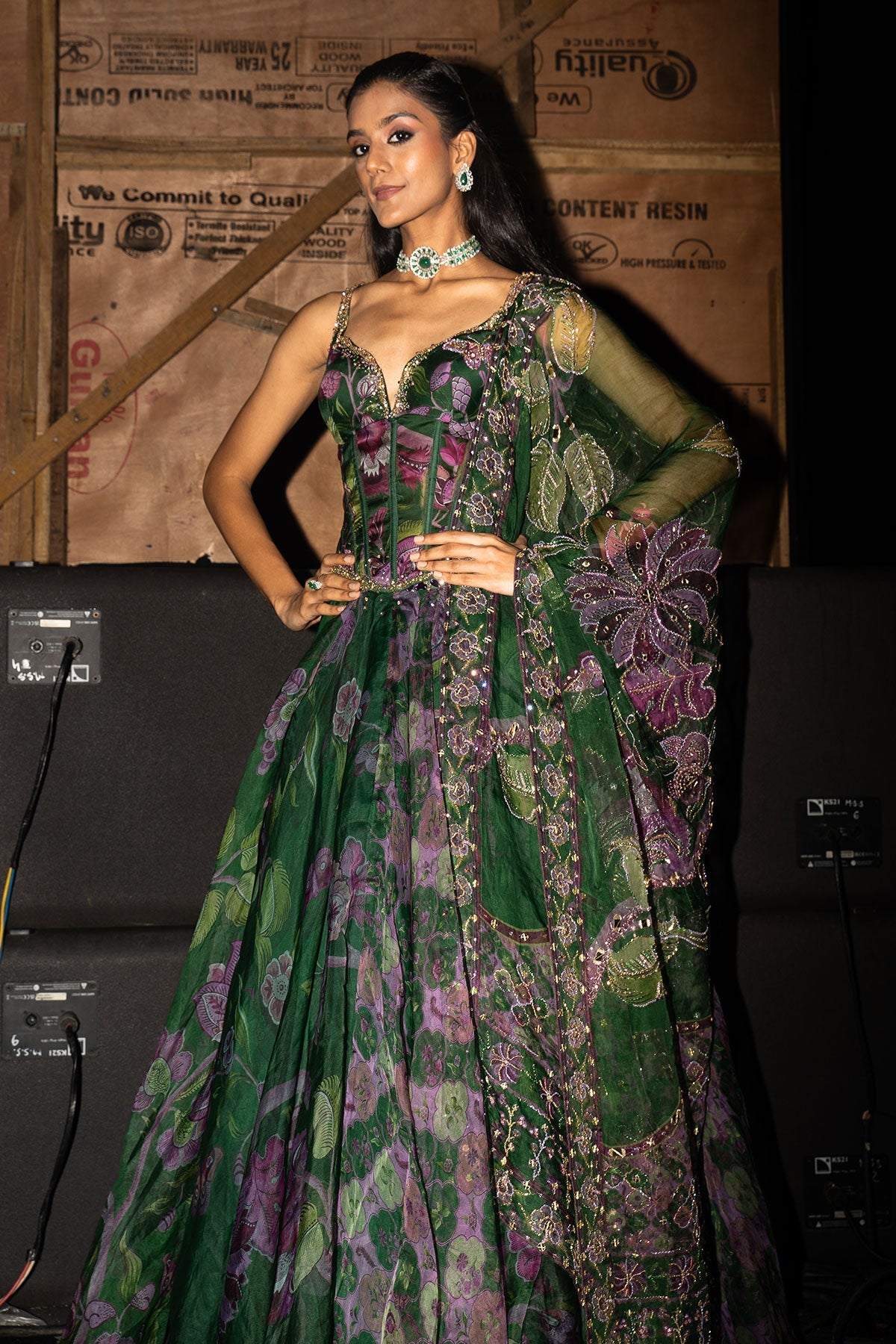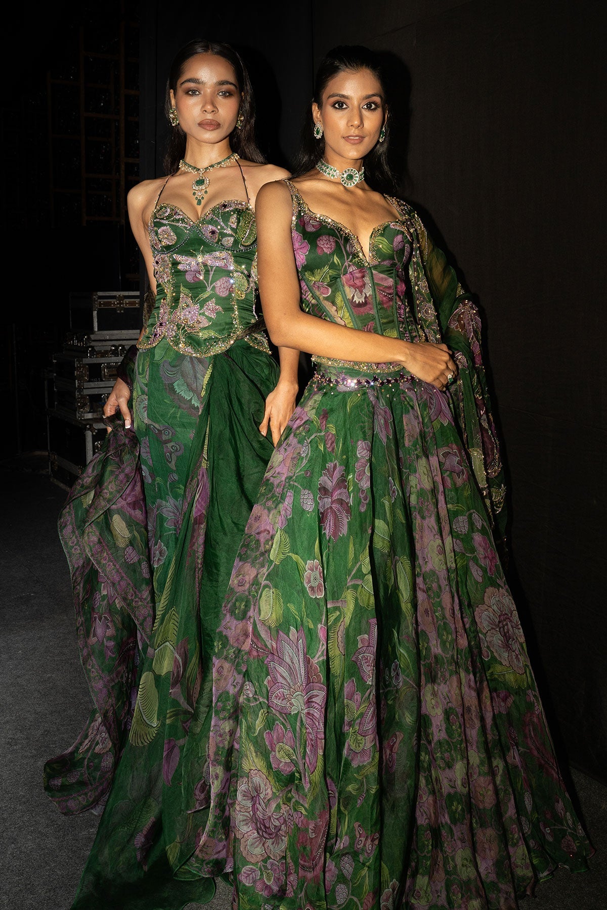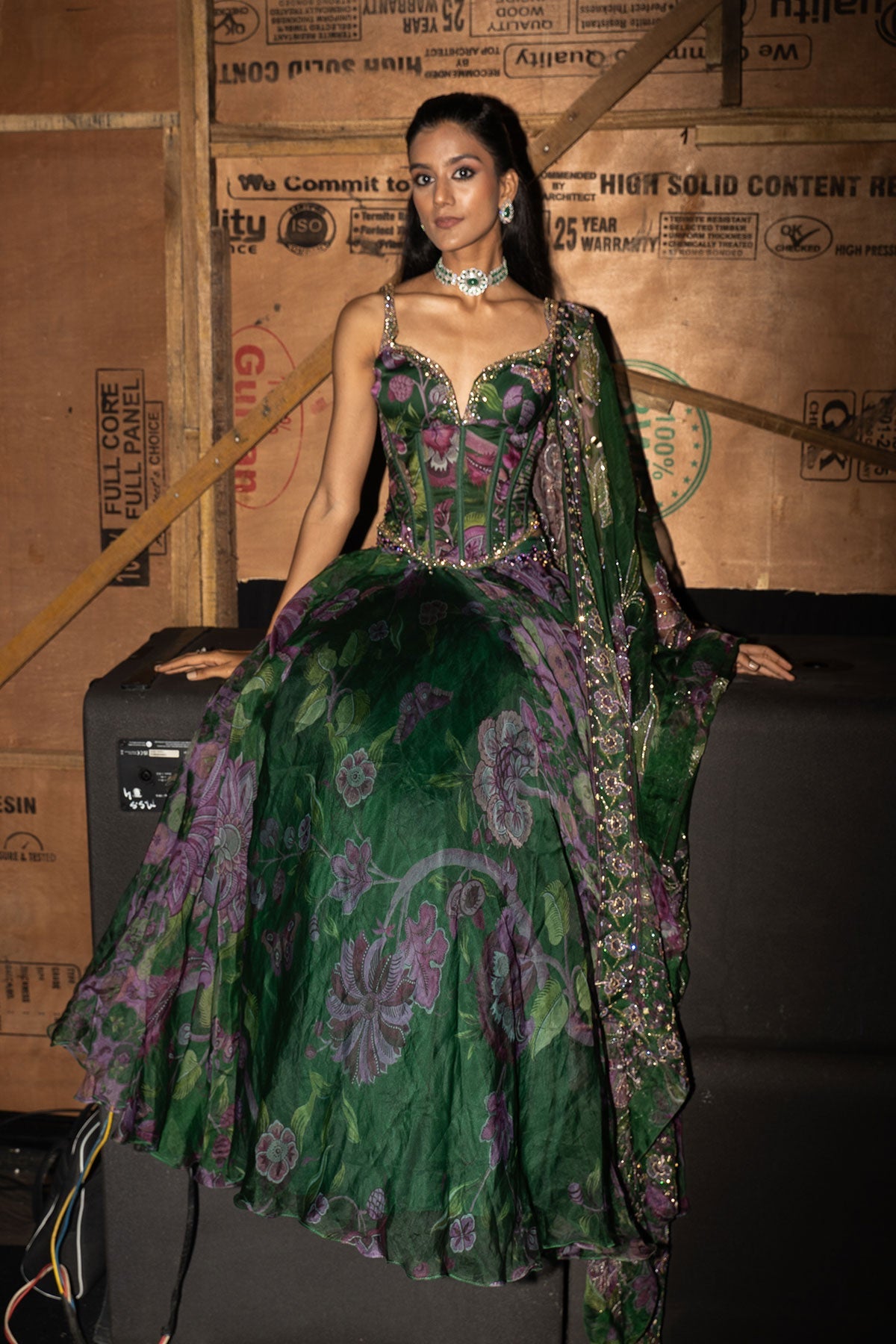 Embroidered Corset Paired With Floral Lehenga And Dupatta