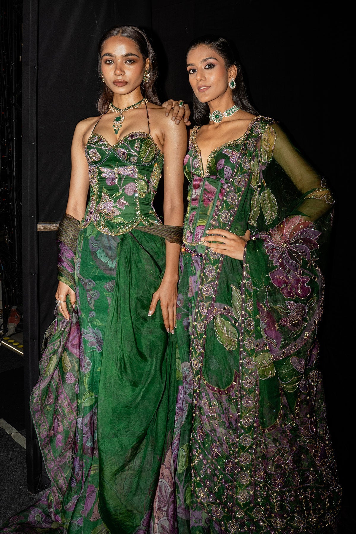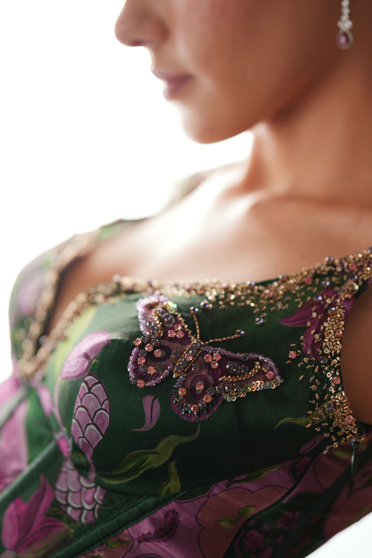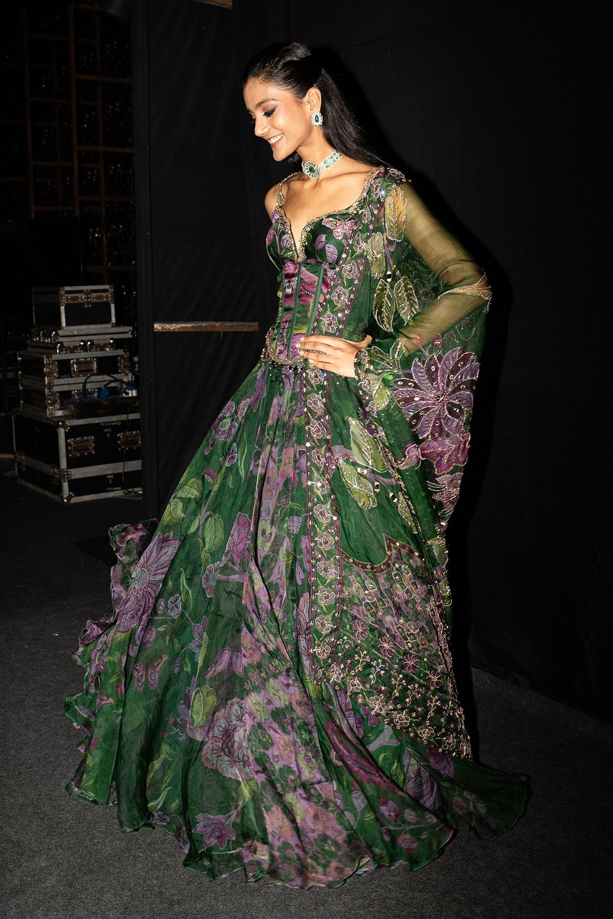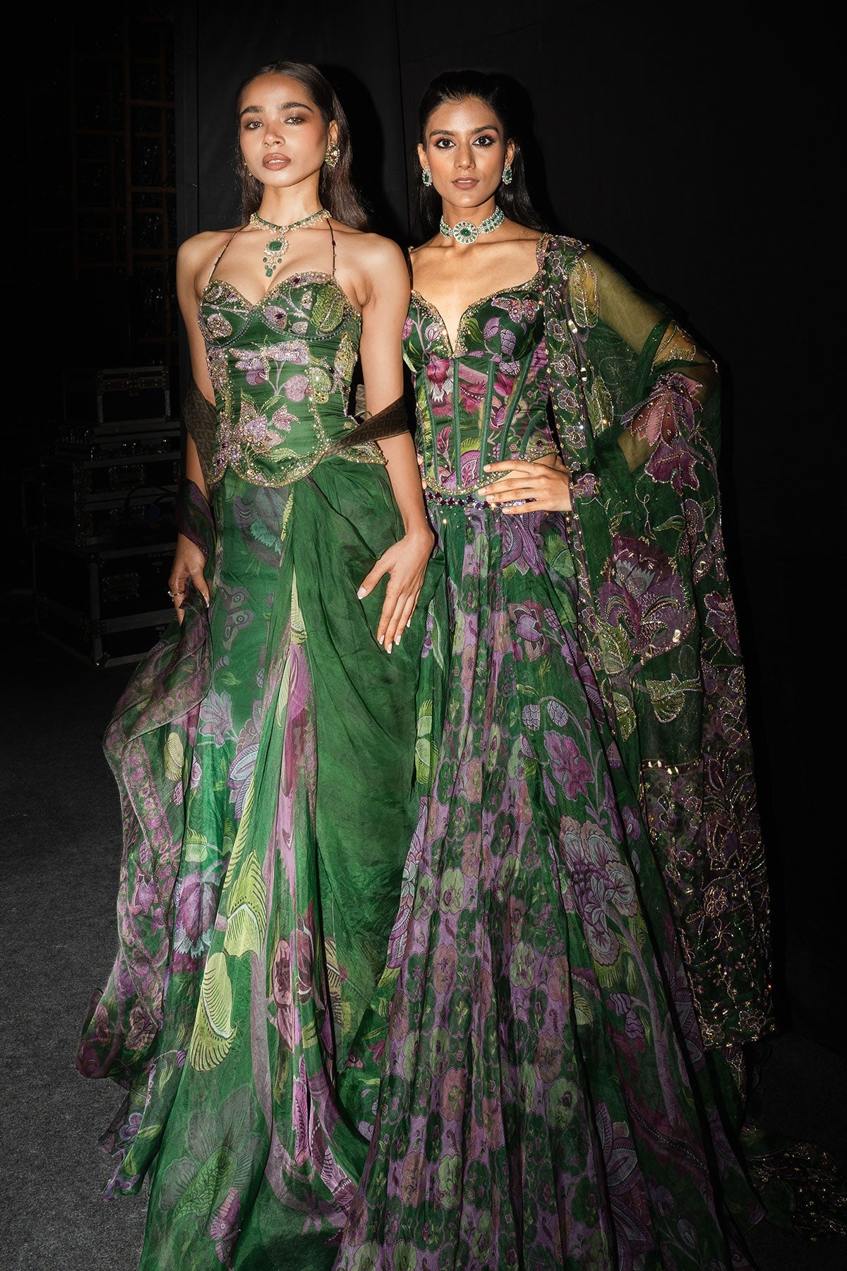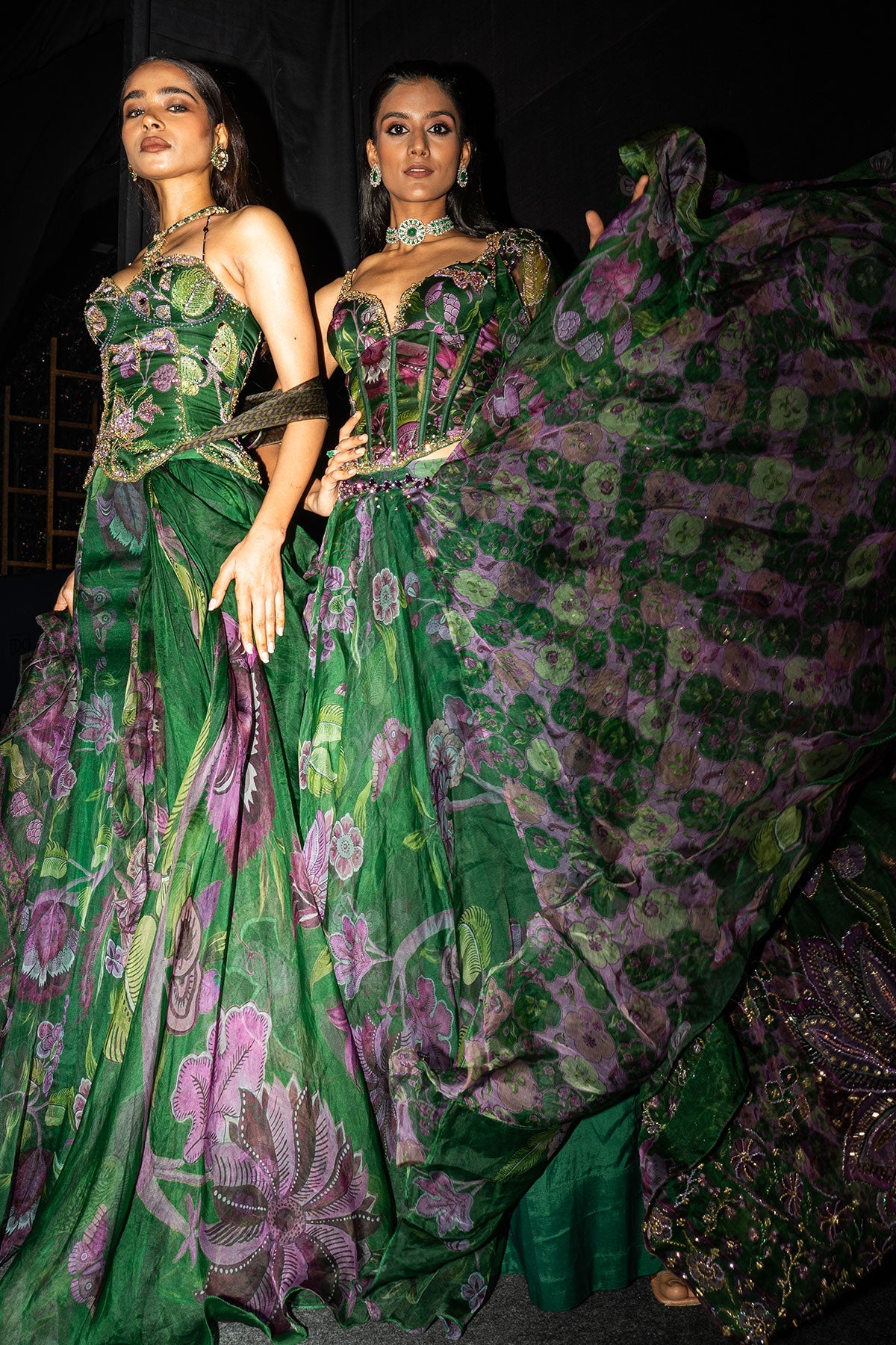 Embroidered Corset Paired With Floral Lehenga And Dupatta
