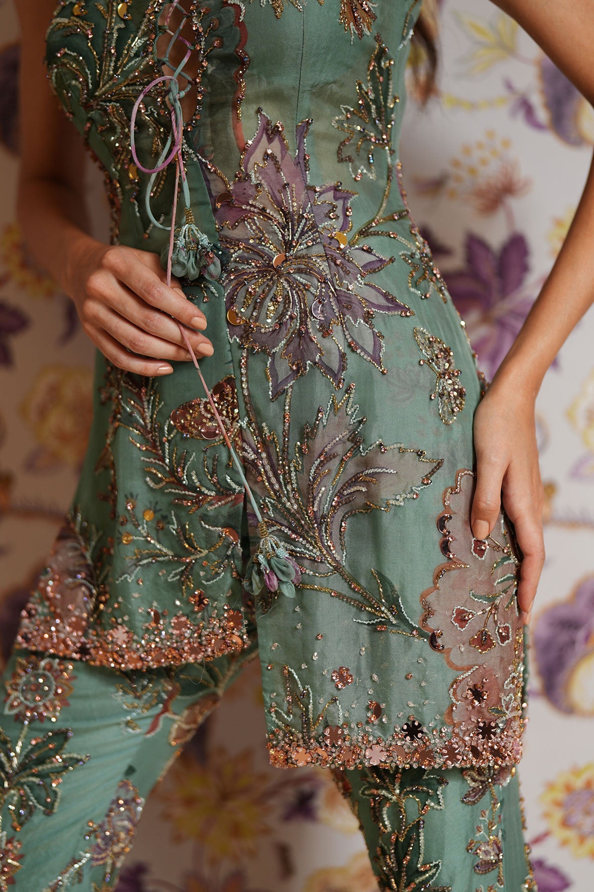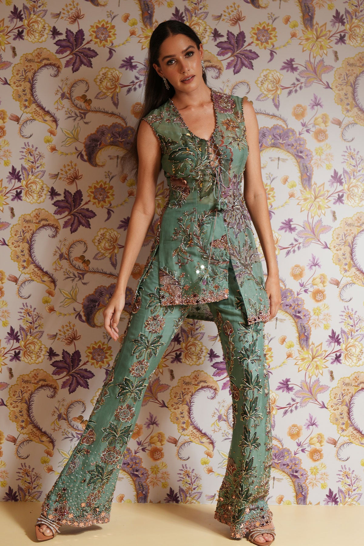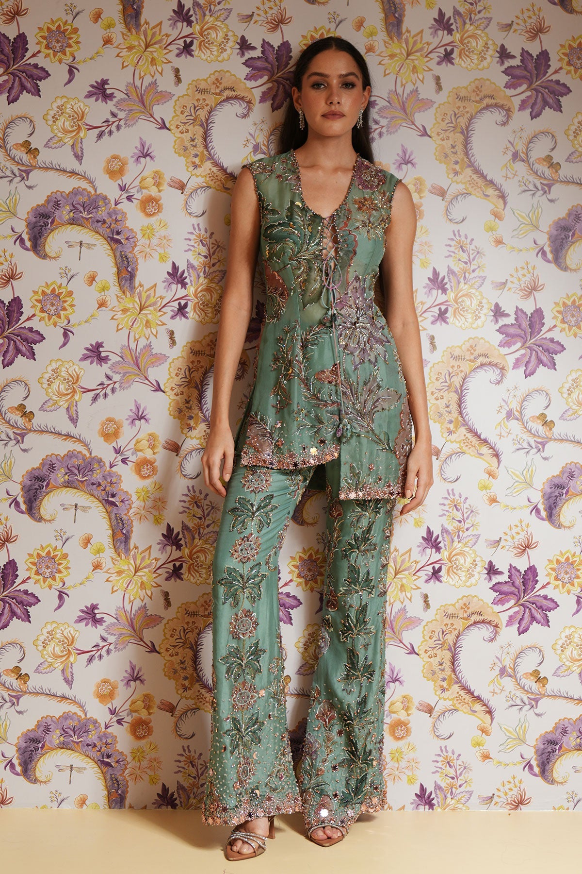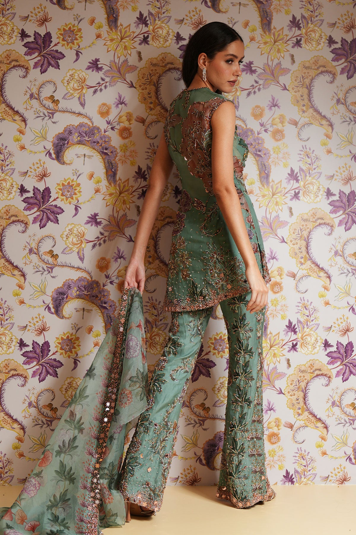 Hand Embroidered Short Kurta Paired With Embroidered Straight Pants And Dupatta