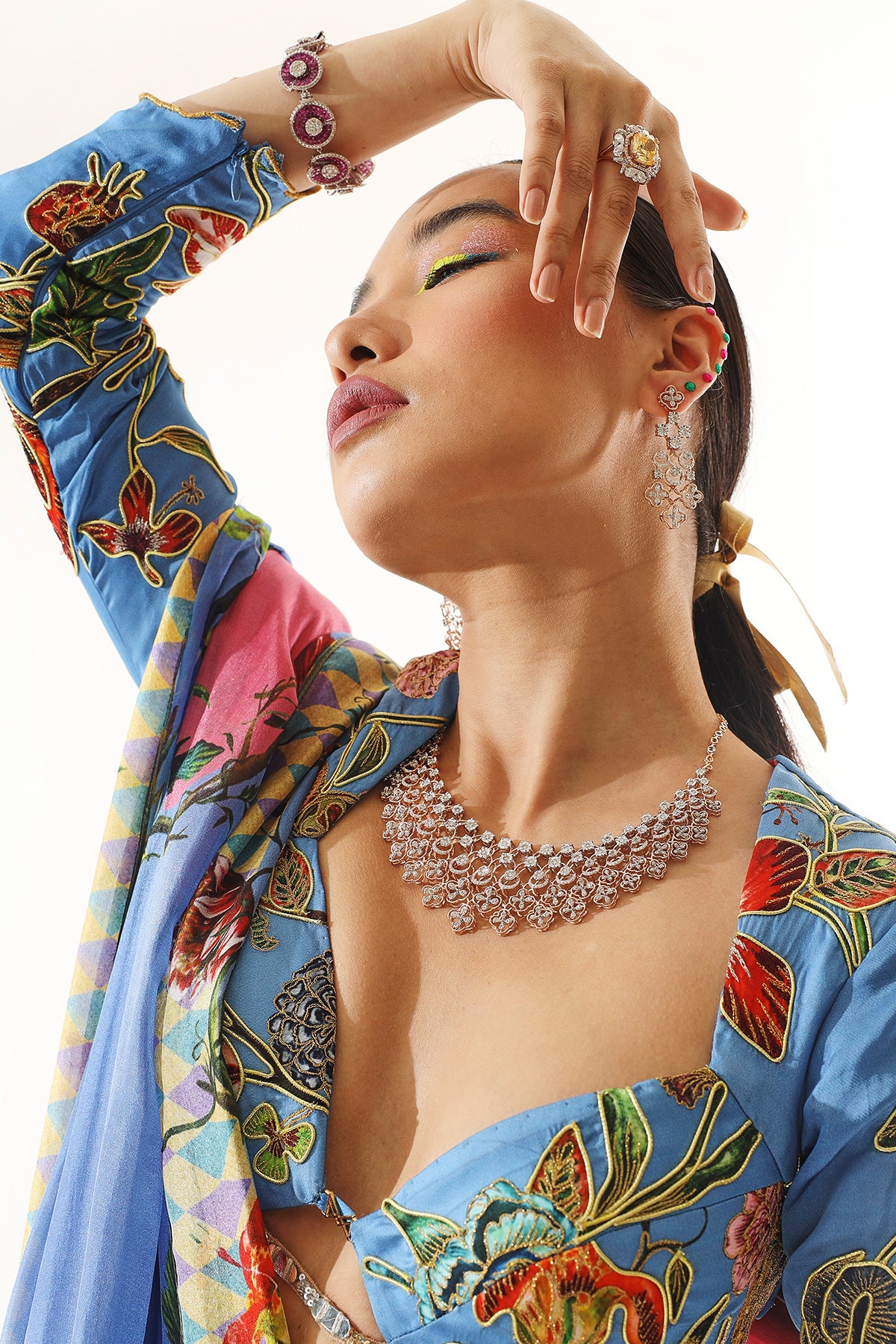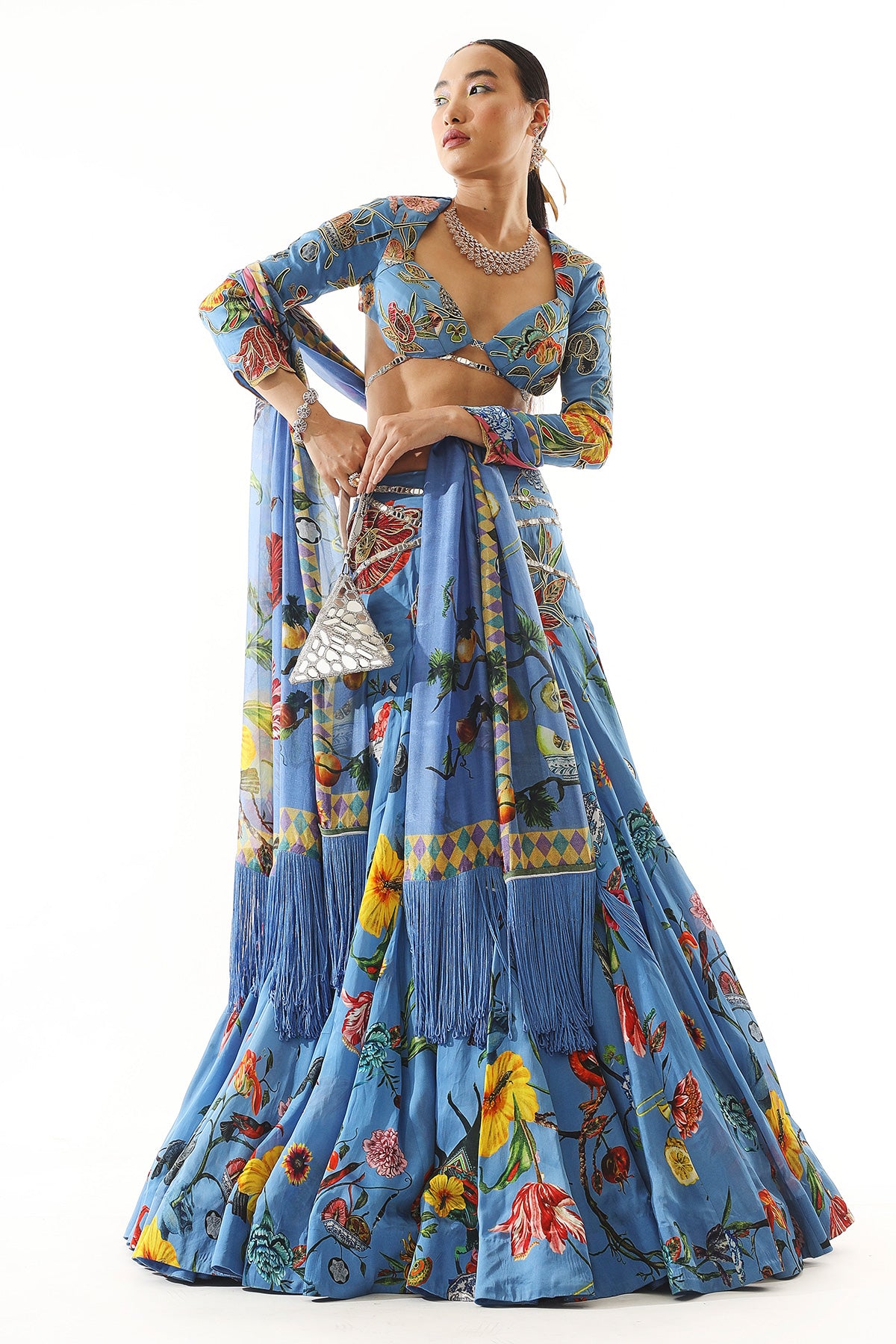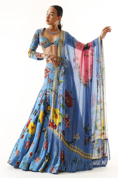 Printed Lehenga Set With Embroidery And Printed Dupatta