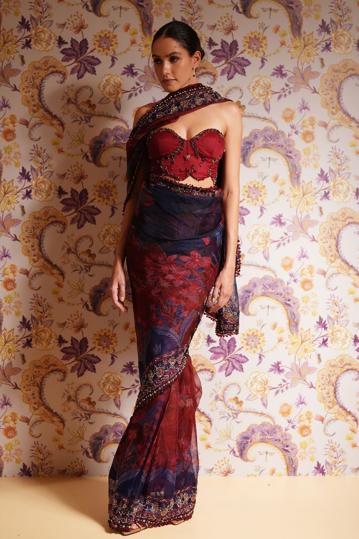 Embroidered Corset Paired Predraped Saree