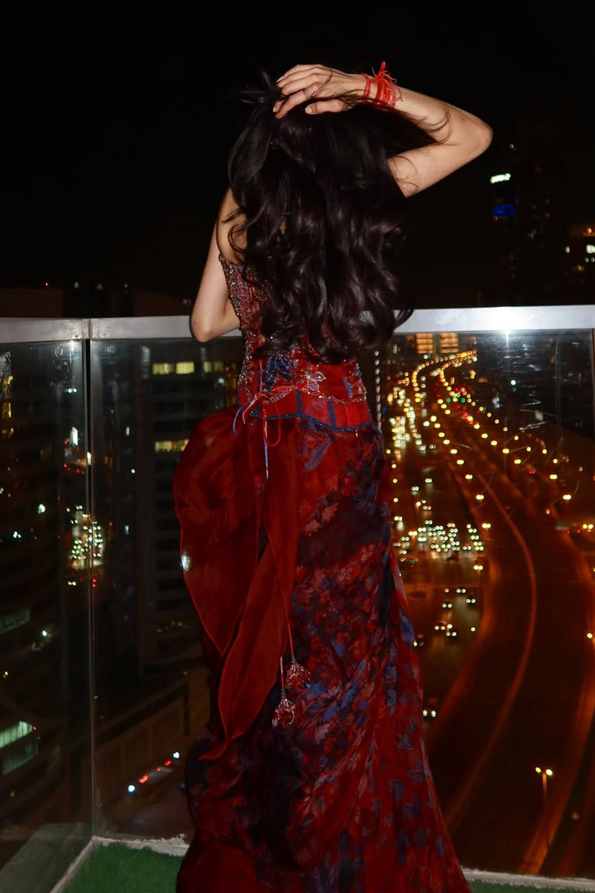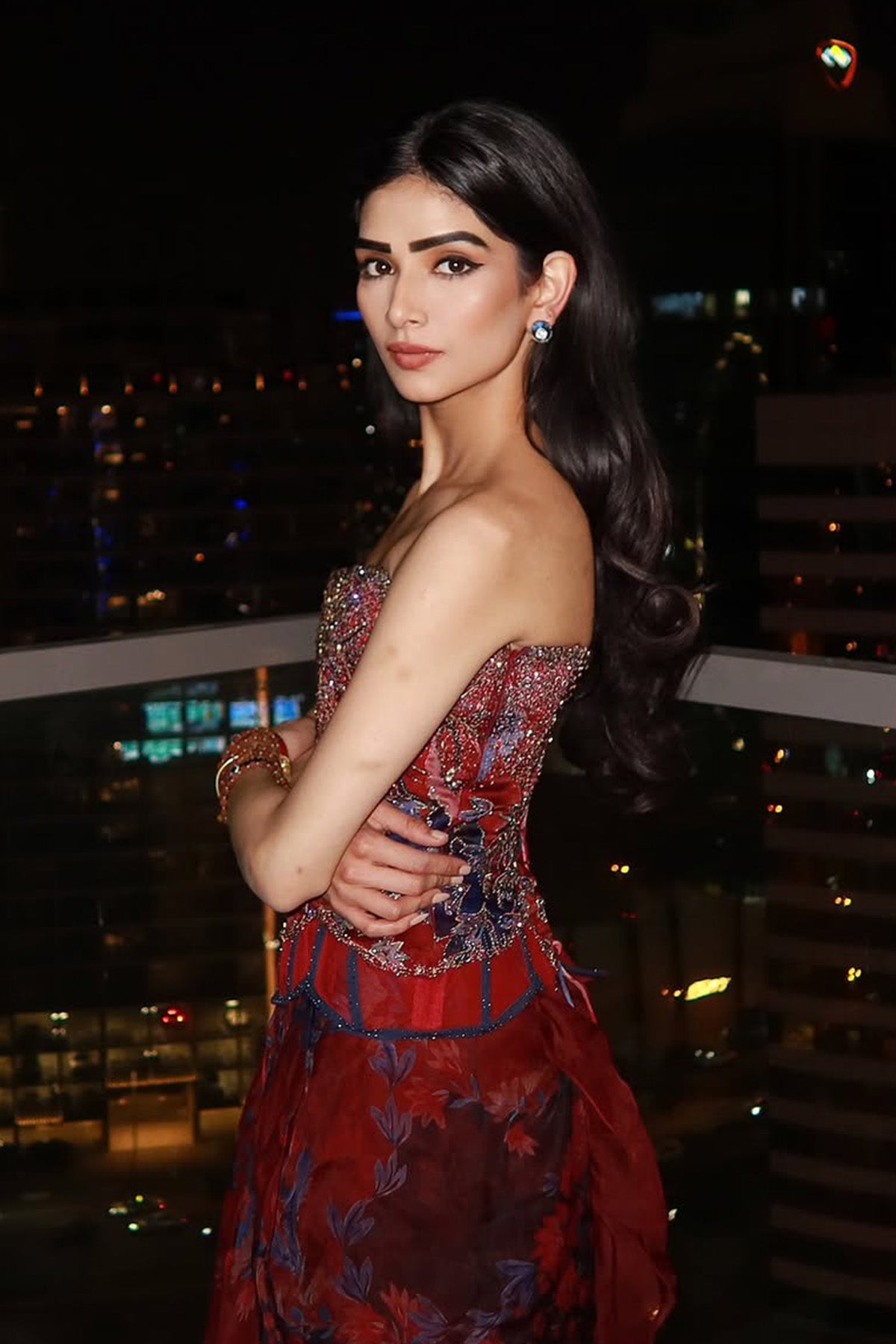 Heavy Hand Embroidered Corset Paired With Draped Skirt And Dupatta