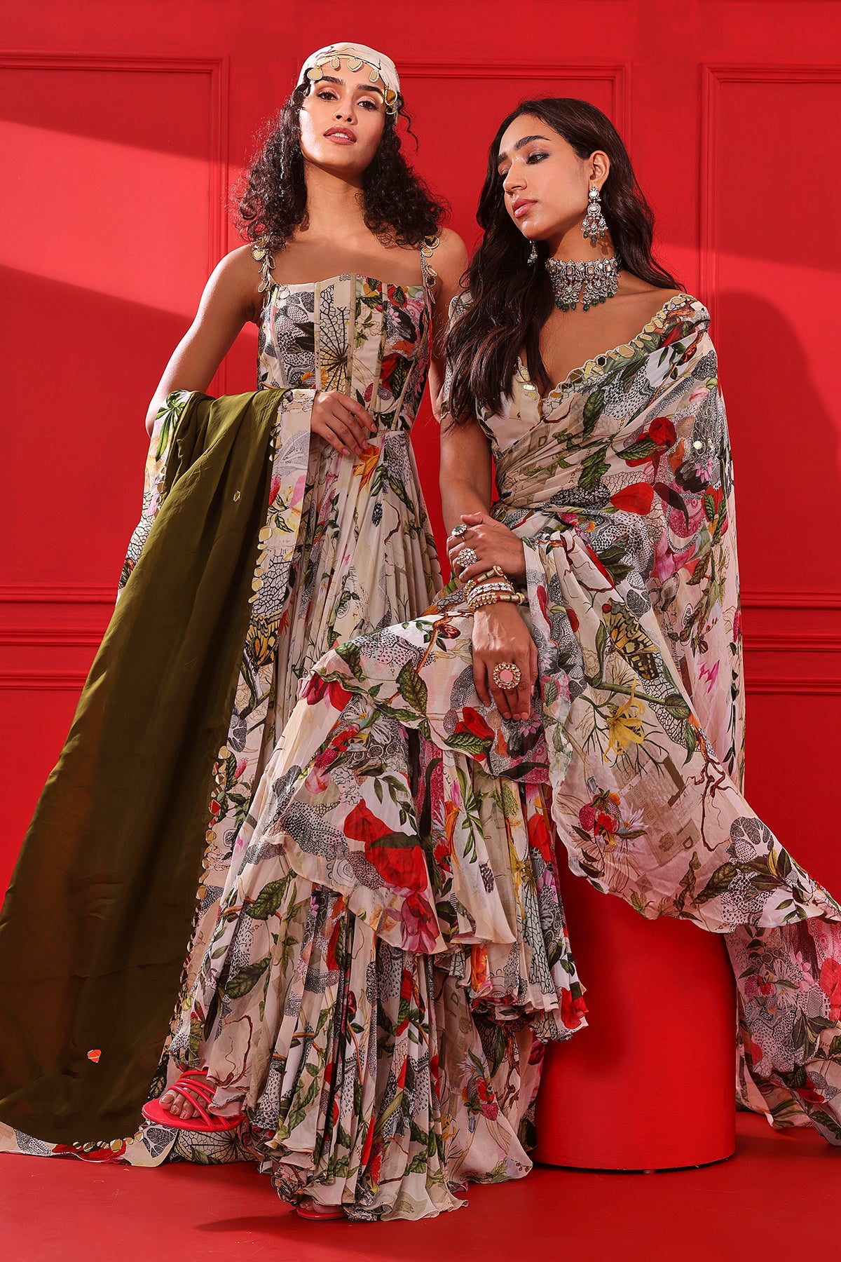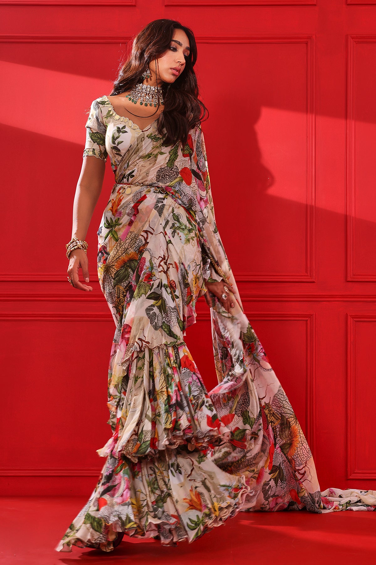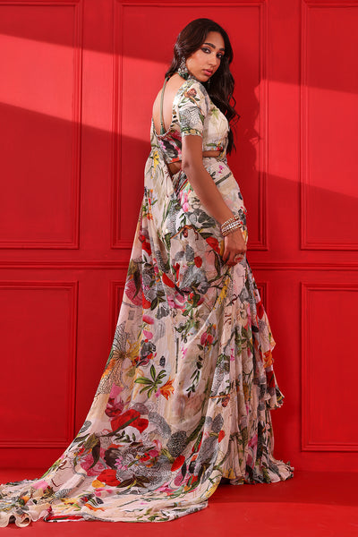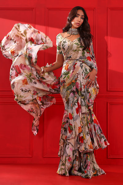 Printed Frill Saree Set