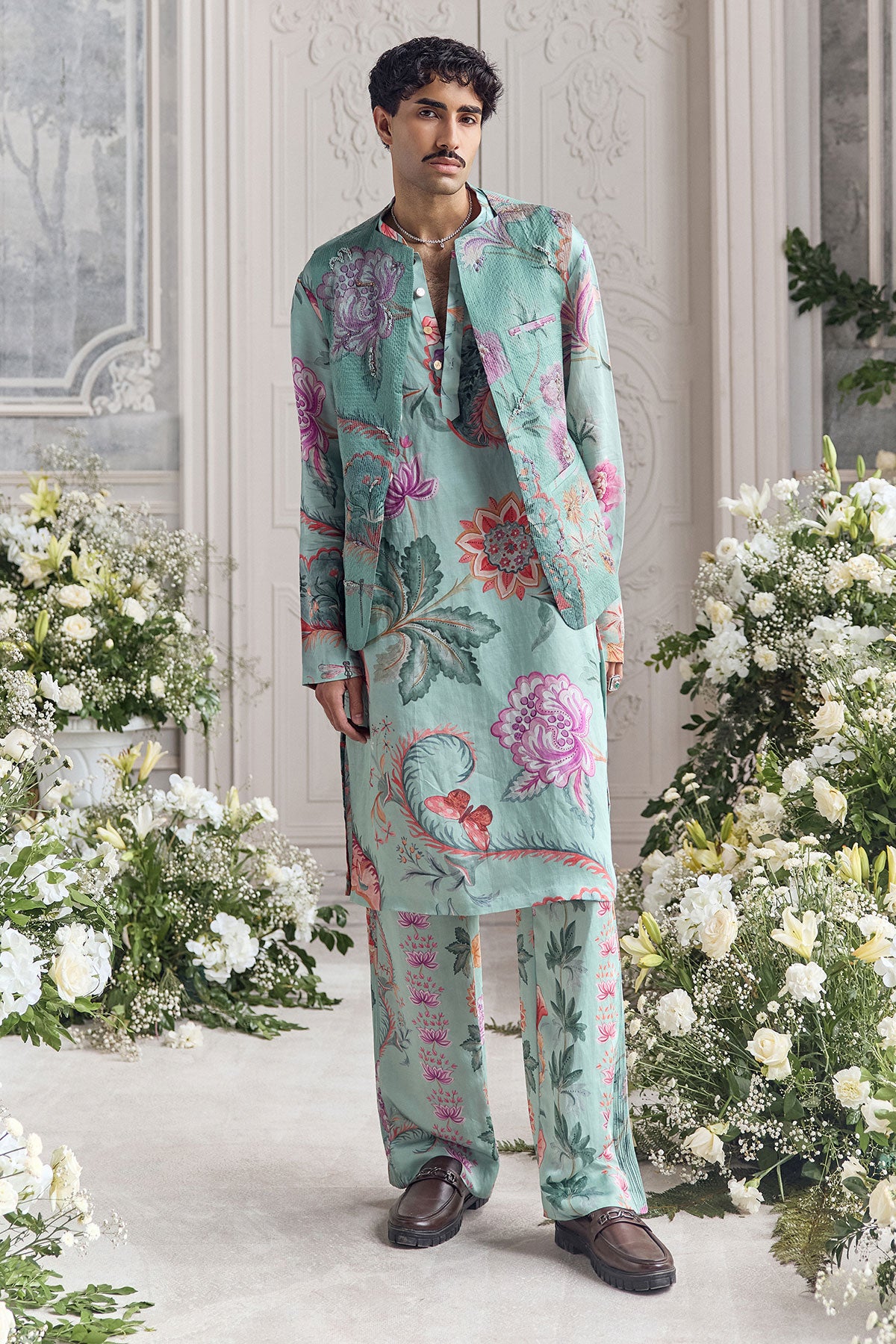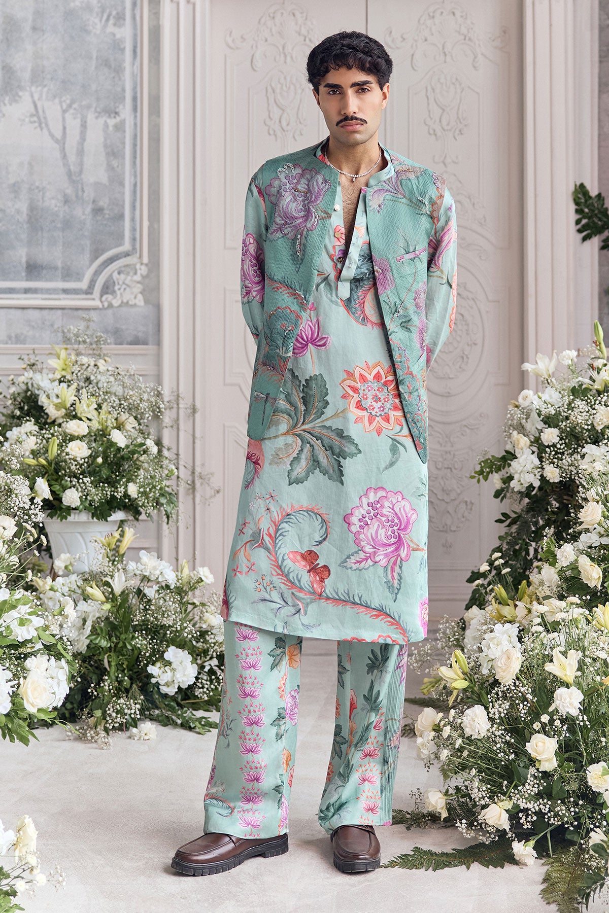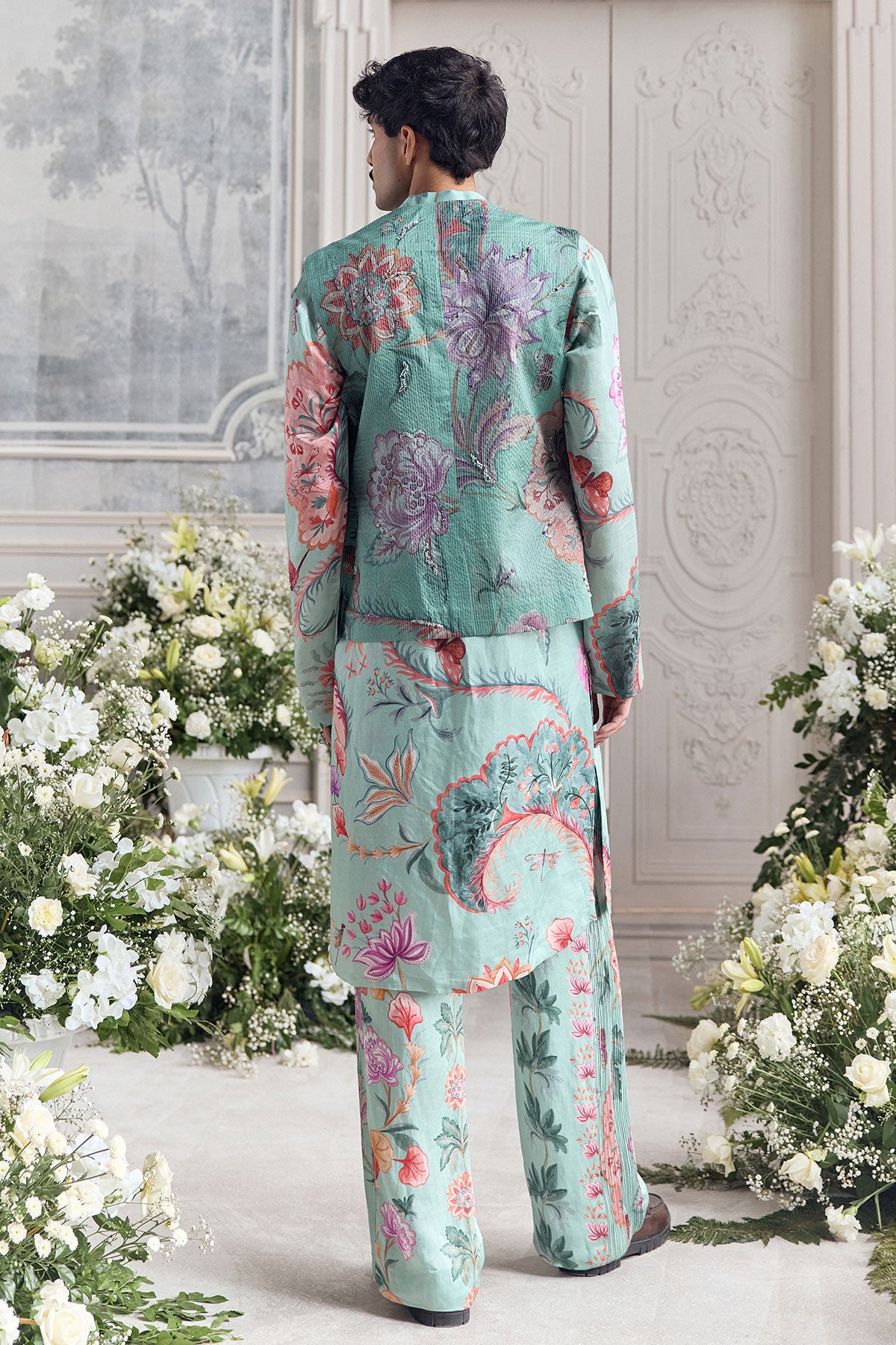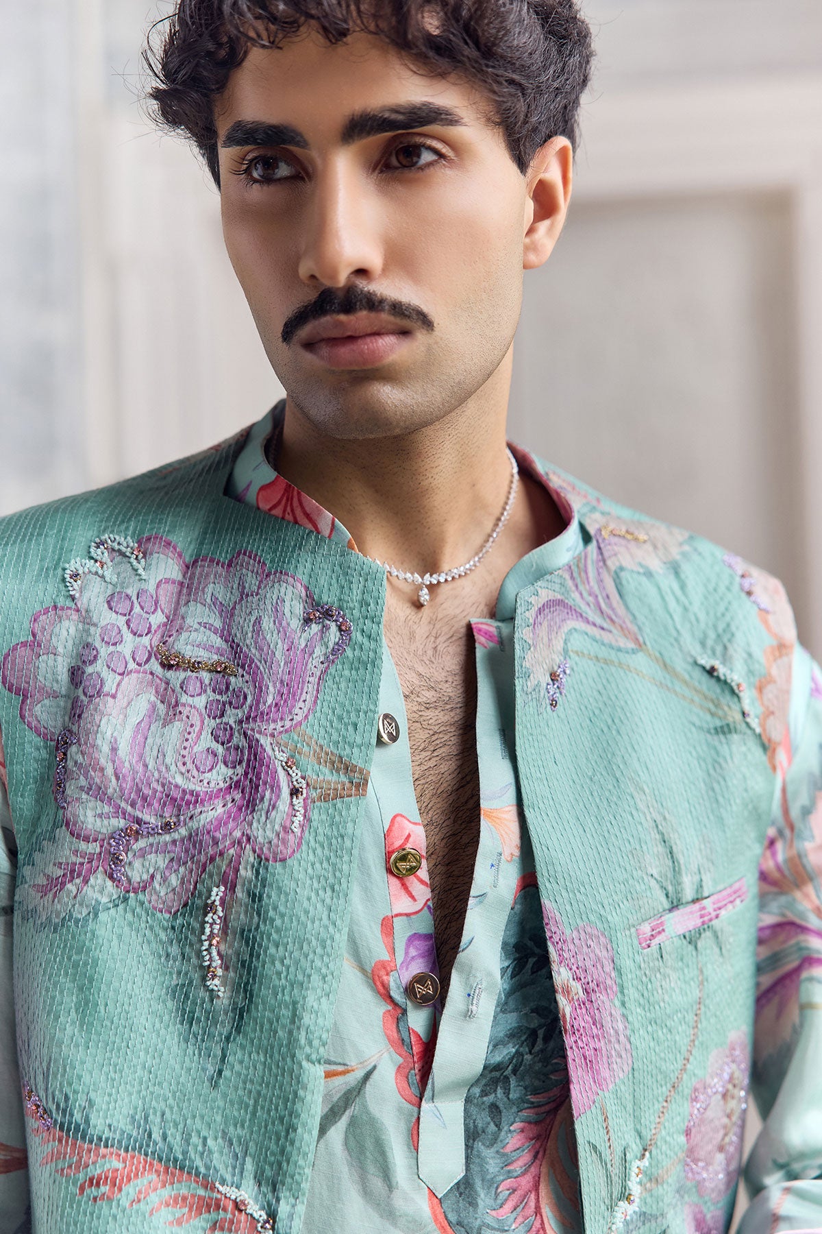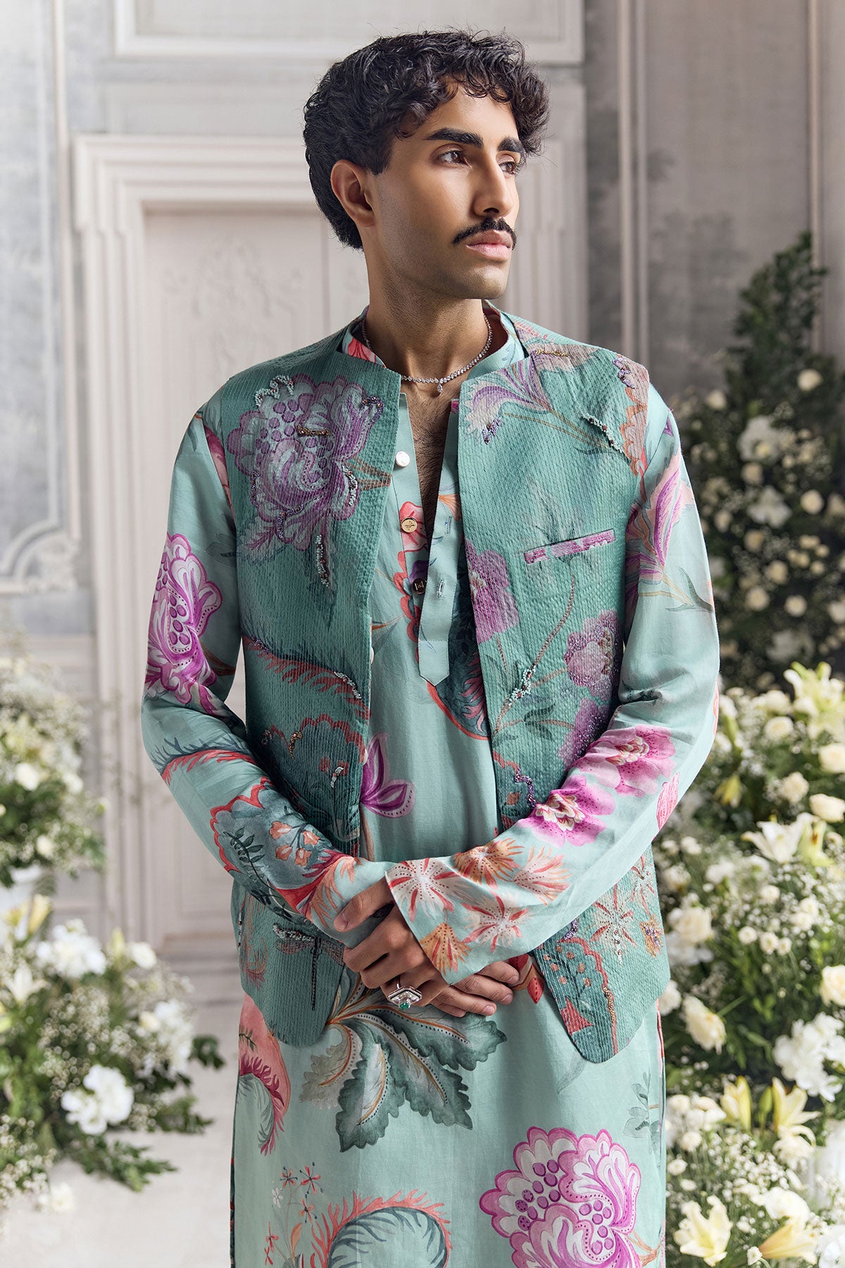 QUILTED HAND EMBROIDERED BUNDI PAIRED KURTA AND TROUSER