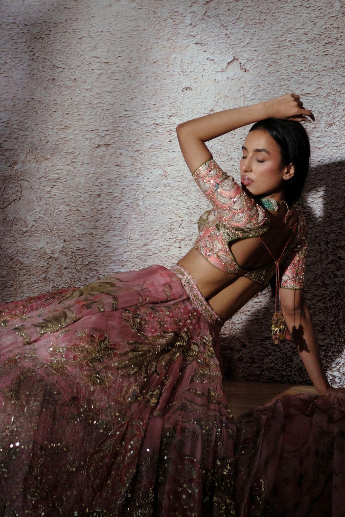 EMBROIDERED BLOUSE WITH EMBROIDERED LEHENGA AND DUPATTA