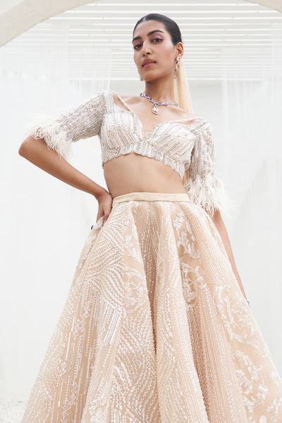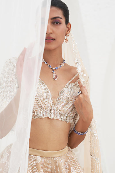 Embroidered Blouse And Lehenga With Embroidered Organza Dupatta